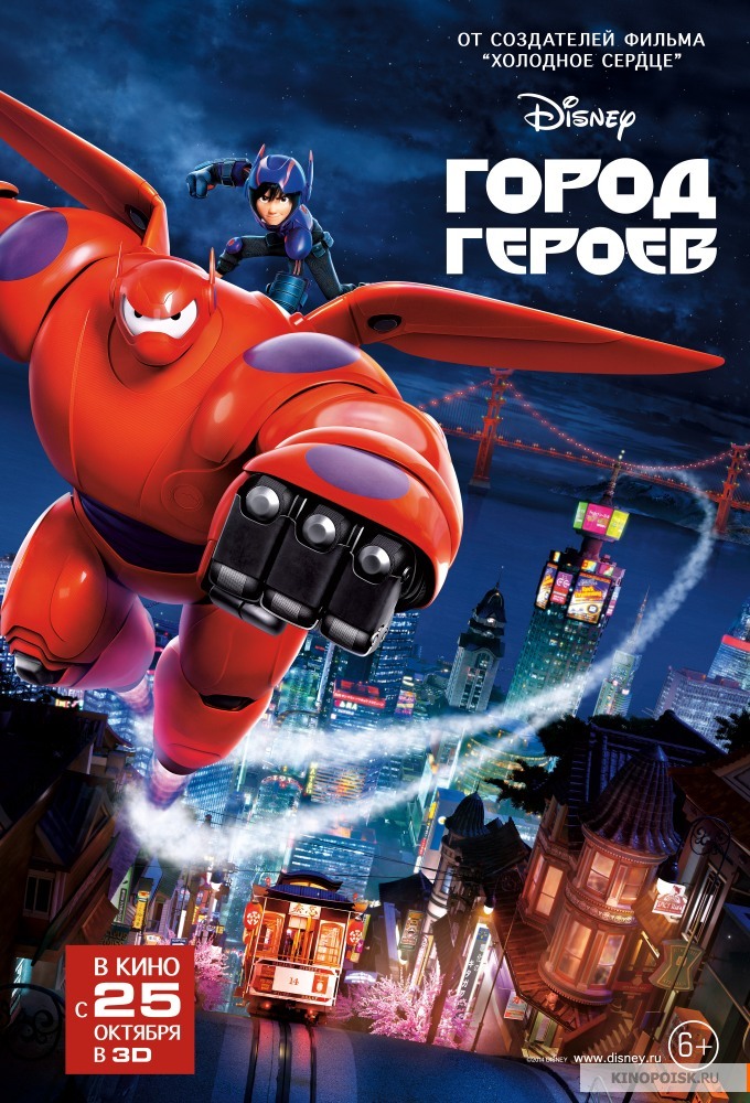 Юный Хиро Хамада — прирожденный изобретатель и гений конструирования роботов. Вместе со старшим братом Тадаши они воплощают в жизнь самые передовые идеи в Техническом университете города будущего Сан-Франсокио. После серии загадочных событий друзья оказываются в центре коварного заговора. Отчаявшись, Хиро решает использовать веселого и добродушного экспериментального робота Бэймакса, перепрограммировав его в неуязвимую боевую машину. Режиссер: Дон Холл, Крис Уильямс