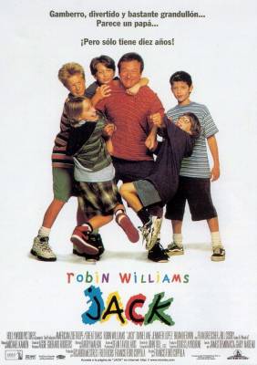 Режиссер: Фрэнсис Форд Коппола О фильме: Джеку десять лет. Как и все дети его возраста, он ходит в школу и пытается завести друзей. Но за парту Джек не помещается, да и сверстники все время смеются над ним. Дело в том, что он растет намного быстрее них и выглядит гораздо старше... в четыре раза. Необычное заболевание ускорило рост мальчика, и к своим десяти годам он превратился во взрослого мужчину... внешне. Но в душе Джек все равно остается ребенком.